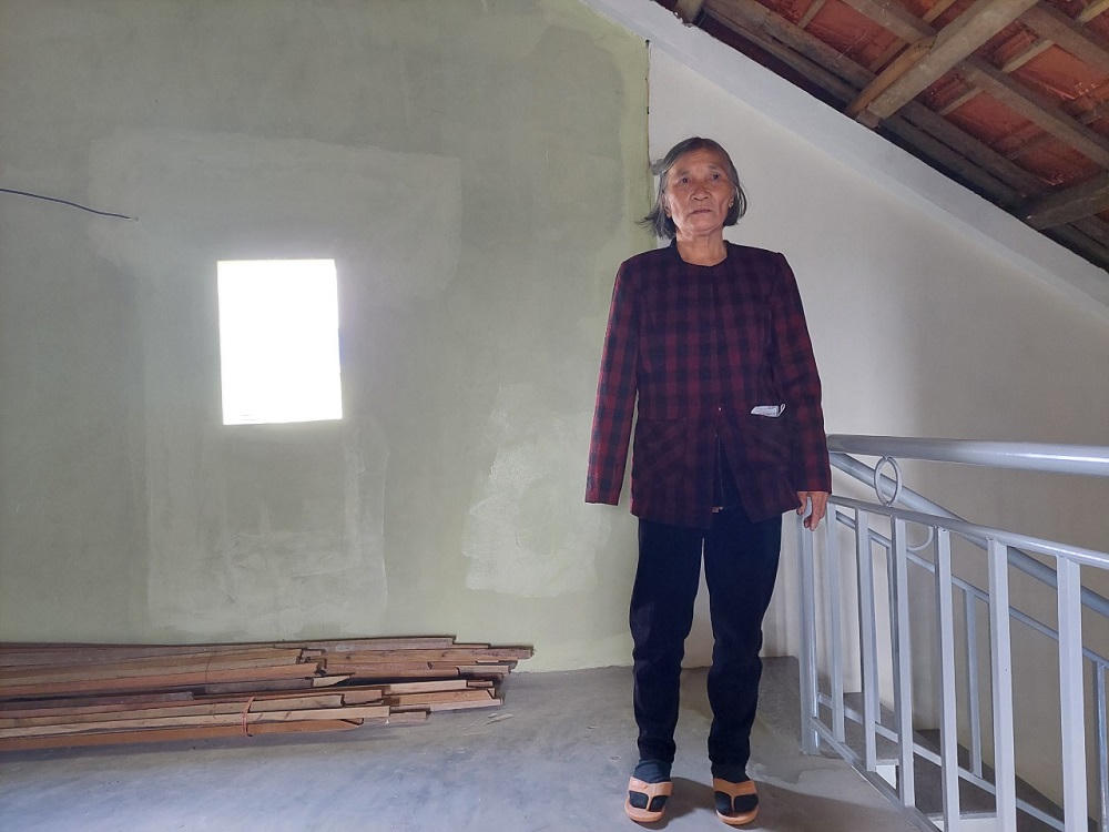 Bà Hiền tâm sự; trước đó tôi phải sống trong ngôi nhà cũ dột nát, trận lũ năm 2020 ngập đến tận nóc nhà. Tôi phải sơ tán đồ đạc sợ bị lũ cuốn trôi, rồi tìm về nhà các con để trú ẩn.