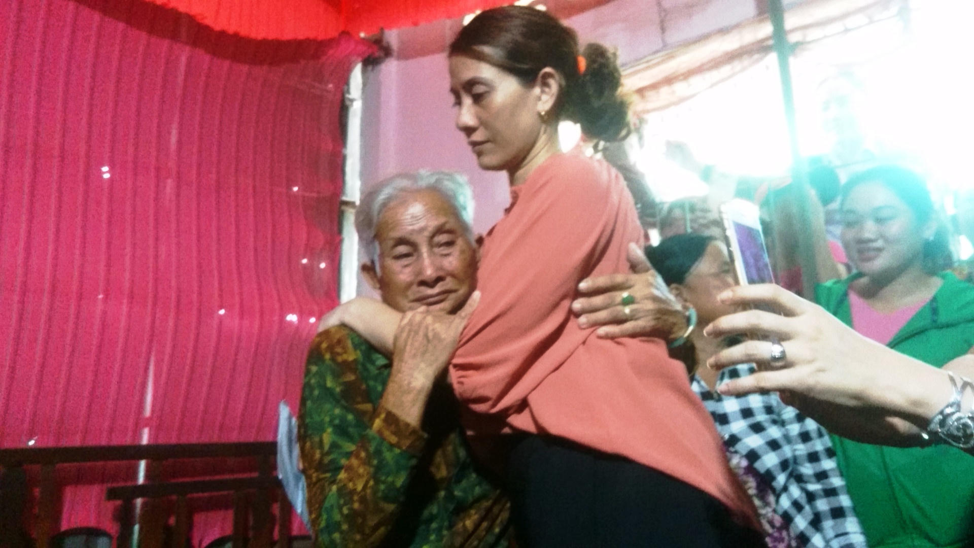 Từ sáng sớm 4/7, nhiều người thân cũng như người dân ở gần nhà bà Nguyễn Thị Hến (83 tuổi, mẹ đẻ của chị Hon) đã tụ họp lại để chúc mừng bà gặp lại người con gái tưởng đã không còn và được gia đình làm đám giỗ suốt 18 năm qua.