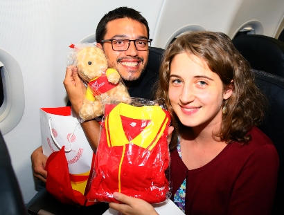 | Những hành khách may mắn nhận được vé miễn phí trên chuyến bay "chắp cánh yêu thương" |