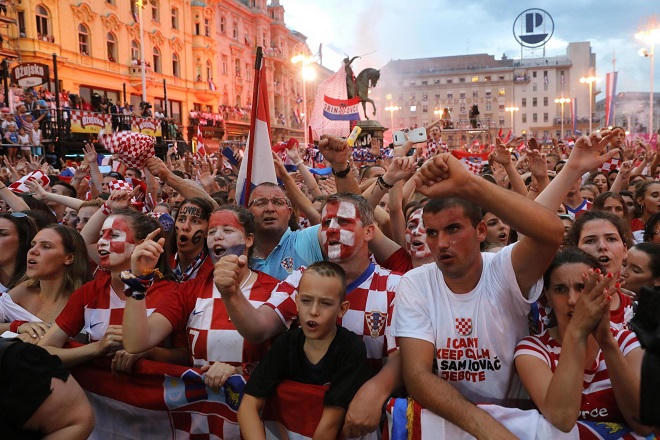 Tại Zagreb, những lá cờ cũng ba màu Xanh - Trắng - Đỏ với những ô sọc trắng và đỏ ở giữa của Croatia rợp trời. Nửa triệu người, tức gần 12% dân số cả nước, dừng mọi hoạt động, đổ về Zagreb kiên nhẫn hàng giờ với hy vọng được trông thấy đội bóng Vatreni.