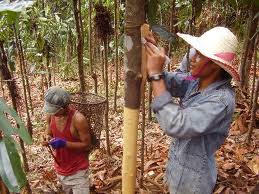 Niềm vui không giấu được khi anh chị chỉ cho chúng tôi những giọt sơn đang chảy từ vết cắt ở thân cây – lúc này đang là nguồn thu nhập quan trọng nhất trong gia đình. Anh Quế kể: “Trên ngọn đồi này, gia đình chúng tôi trồng được 3000 cây sơn. Đây là lứa sơn 4 năm tuổi, đã cho thu hoạch được 2 năm. Mỗi ngày, đồi sơn này cho thu hoạch 4kg nhựa sơn. Lúc cao điểm, chúng tôi kiếm được 500 – 600.000 mỗi ngày, còn lúc thấp như lúc này đây, cũng được trên 300 nghìn đồng đấy”.