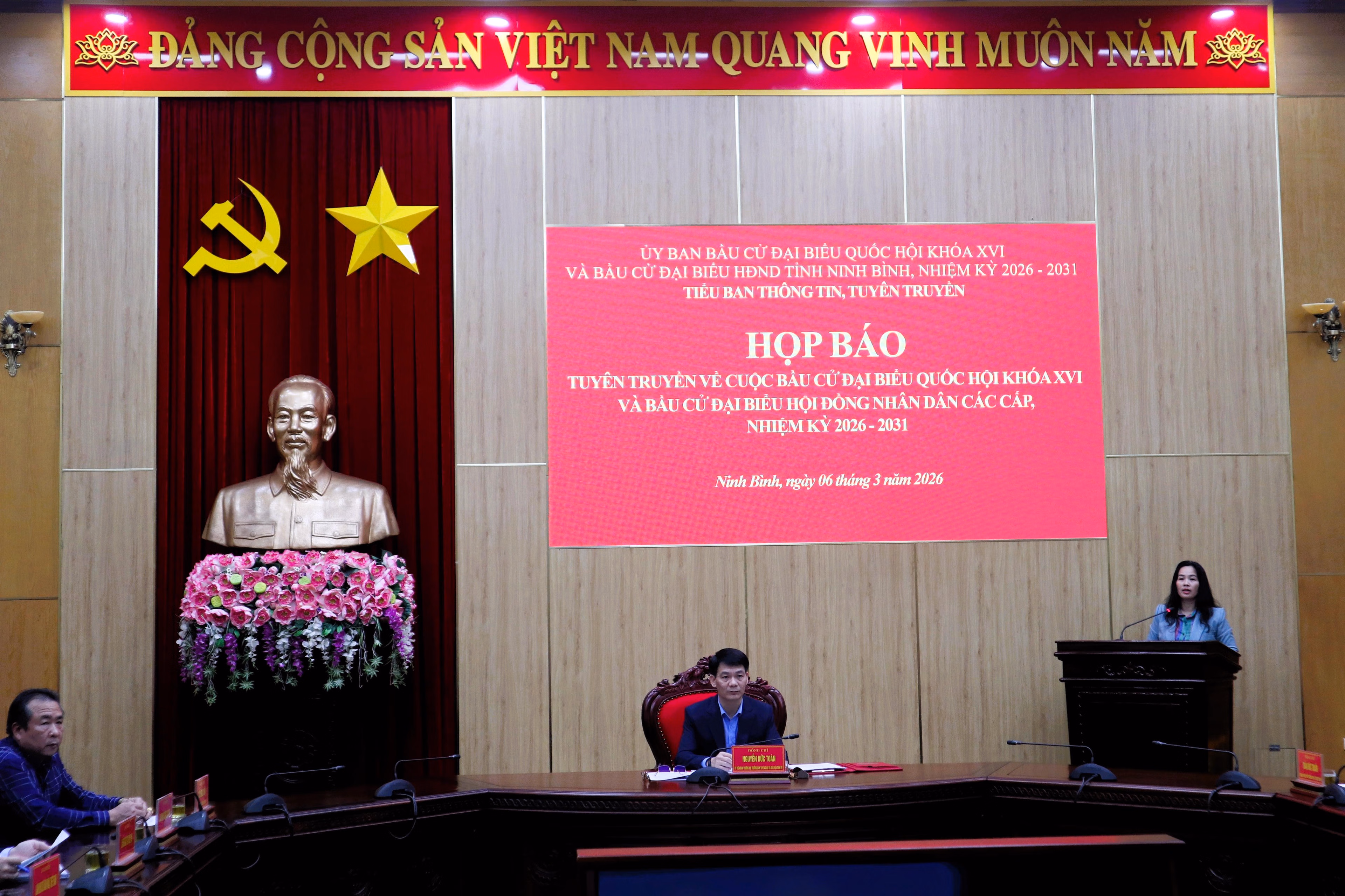 Ngày 6/3, Tiểu ban Thông tin, tuyên truyền thuộc Ủy ban bầu cử tỉnh Ninh Bình tổ chức họp báo cung cấp thông tin về tiến độ chuẩn bị cuộc bầu cử đại biểu Quốc hội khóa XVI và đại biểu HĐND các cấp nhiệm kỳ 2026-2031.