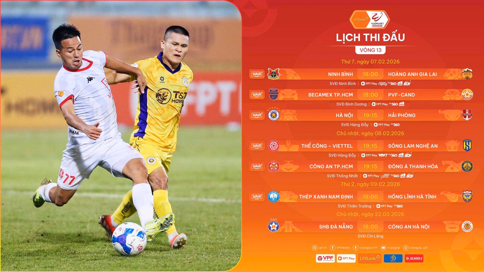 3 trận đầu của vòng 13 V.League 2025/26 sẽ được diễn ra vào ngày Thứ 7 (7/2).