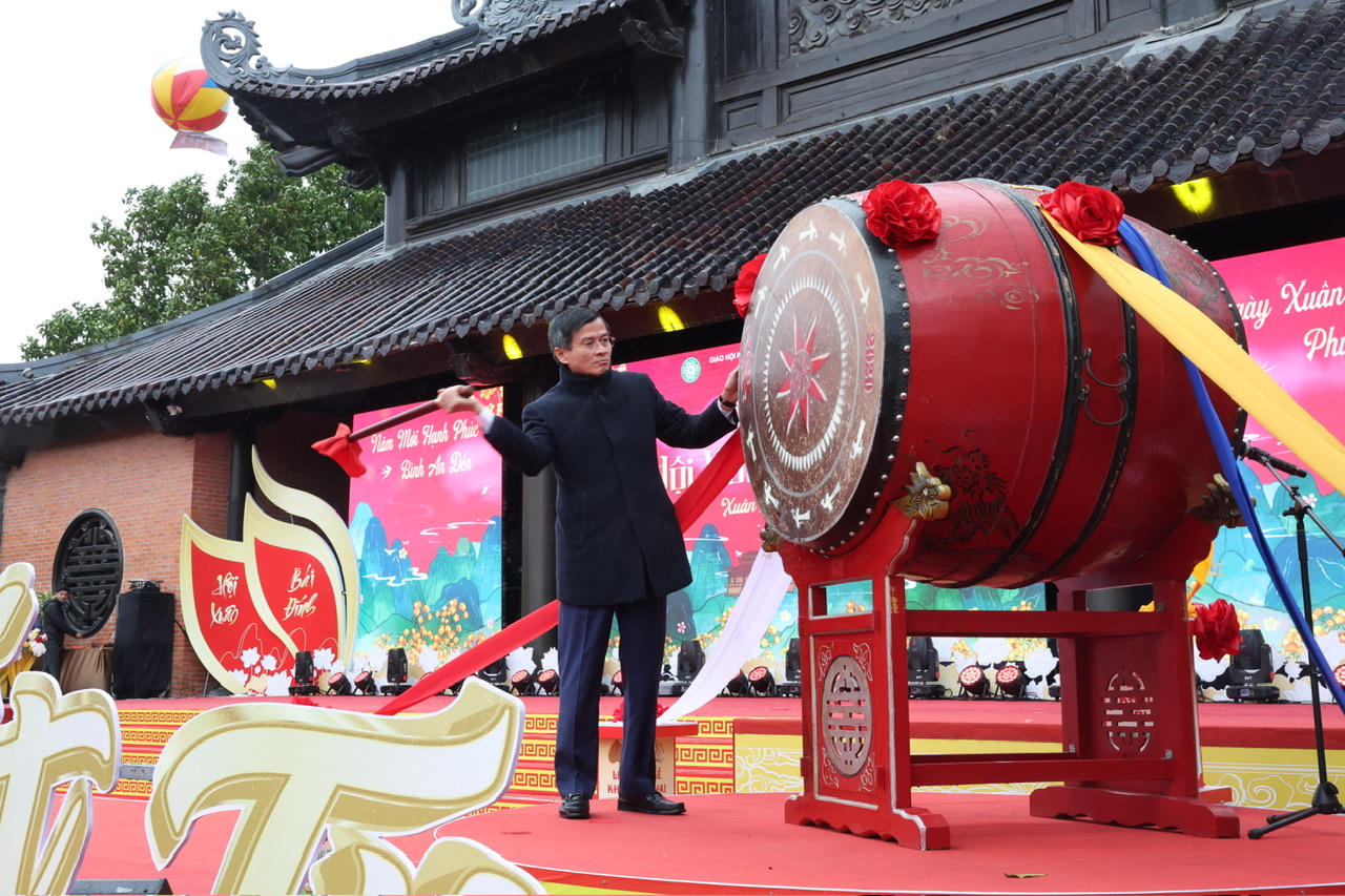 Ông Đoàn Minh Huấn, Ủy viên Trung ương Đảng, Bí thư Tỉnh ủy đã gióng trống tại Lễ khai hội. Tiếp đó, các đại biểu, các chức sắc tôn giáo và tăng ni, phật tử, du khách thập phương đã thực hiện các nghi lễ dâng lục cúng, dâng hương bạch Phật, cầu nguyện cho quốc thái dân an, mưa thuận gió hòa, một năm mới nhiều sức khỏe, thành công, ấm no, hạnh phúc cho mọi người, mọi nhà.