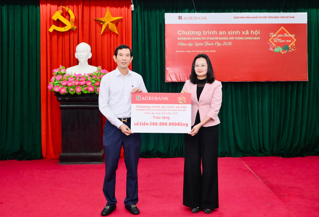 Nhân dịp Tết Nguyên đán Bính Ngọ năm 2026, Agribank Ninh Bình và Agribank Nam Ninh Bình tiếp tục triển khai chương trình an sinh xã hội hướng tới người nghèo và các đối tượng chính sách với thông điệp “Agribank: Trao yêu thương – Tết trọn vẹn”.