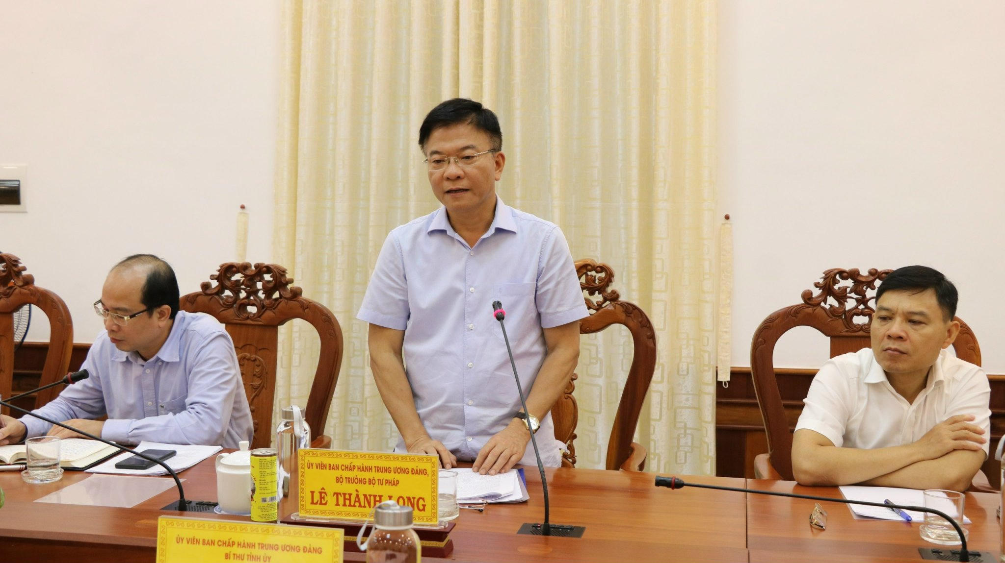Phát biểu tại buổi làm việc, Bộ trưởng Bộ Tư pháp Lê Thành Long chúc mừng những thành tích đạt được trong phát triển kinh tế xã hội của tỉnh Ninh Thuận, nhất là trong bối cảnh còn nhiều khó khăn.