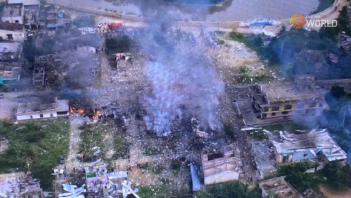 Theo thông tin ban đầu, ngoài pháo hoa, nhà kho này còn cất giữ nhiều loại pháo sáng và pháo nổ khác. Sức nổ kinh hoàng cùng hỏa hoạn đã khiến hàng trăm ngôi nhà, cửa hàng, khu chợ ở gần nhà kho bị hư hỏng nặng. Nhiều người dân được cho vẫn còn đang bị mắc kẹt trong những ngôi nhà này.