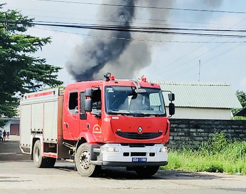 Công an tỉnh Bình Phước đã điều động 10 xe chữa cháy, cùng hàng chục cán bộ, chiến sĩ đến hiện trường |