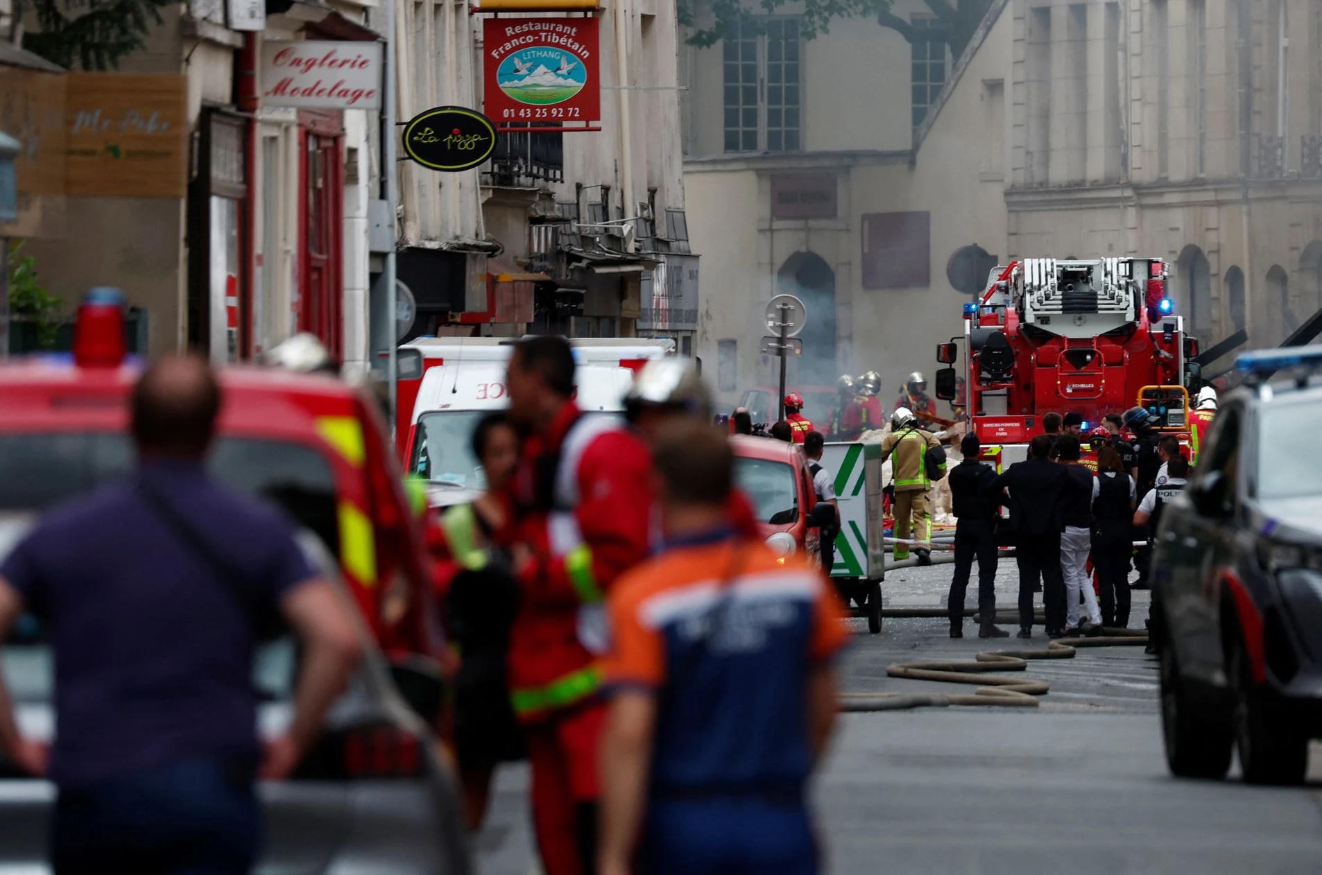 Theo Reuters, vụ nổ khí gas xảy ra tại con phố Rue Saint-Jacques, tuyến phố này chạy từ Nhà thờ Đức Bà Paris đến Đại học Sorbonne, làm ít nhất 37 người bị thương, trong đó có 4 người nguy kịch. Ảnh: Reuters.