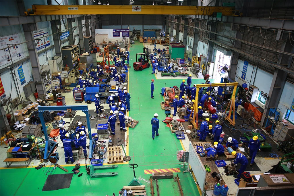 Không khí làm việc tại gói thầu bảo dưỡng gần 1.300 van tại NMLD Dung Quất. (Ảnh: BSR). |