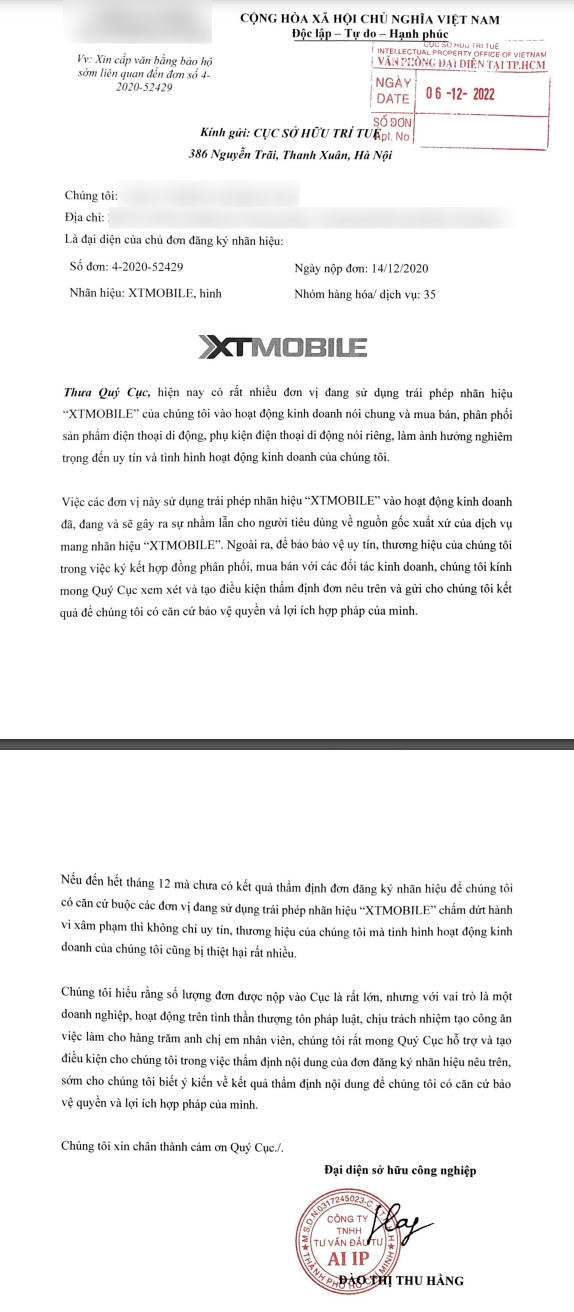 XTMobile nhiều lần gửi đơn cho các cơ quan chức năng yêu cầu xử lý các hành vi xâm phạm nhãn hiệu của mình. Ảnh: XTMobile |