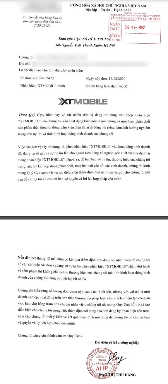 Chính vì vậy, vào cuối năm ngoái, XTMobile đã nhiều lần gửi đơn cho các cơ quan chức năng yêu cầu xử lý các hành vi xâm phạm nhãn hiệu của mình.