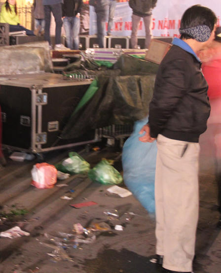 (PLO) - Sau lễ hội Count Down chào đón năm mới 2014 tại Nhà hát lớn Hà Nội, người dân ra về, để lại rác thải ngổn ngang khắp nơi, cả trong vườn hoa... Đó cũng là lúc nhân viên môi trường bắt đầu nỗ lực làm việc...
