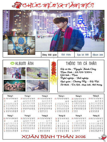 Bạn Lại Văn Minh (Trường Đại học Bách Khoa Hà Nội) cho biết: “Mình có học công nghệ thông tin, thời gian gần đây thấy các bạn trẻ thích thú với những bộ lịch mang dấu ấn cá nhân. Vì vậy mình giúp bạn bè thiết kế những bộ lịch cho riêng họ.