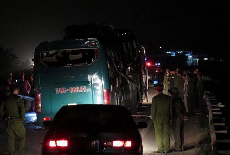 Khoảng 2h30 công tác khám nghiệm hiện trường kết thúc. Lực lượng chức năng đưa xe kéo đến kéo chiếc xe khách về Công an tỉnh để phục vụ công tác điều tra.