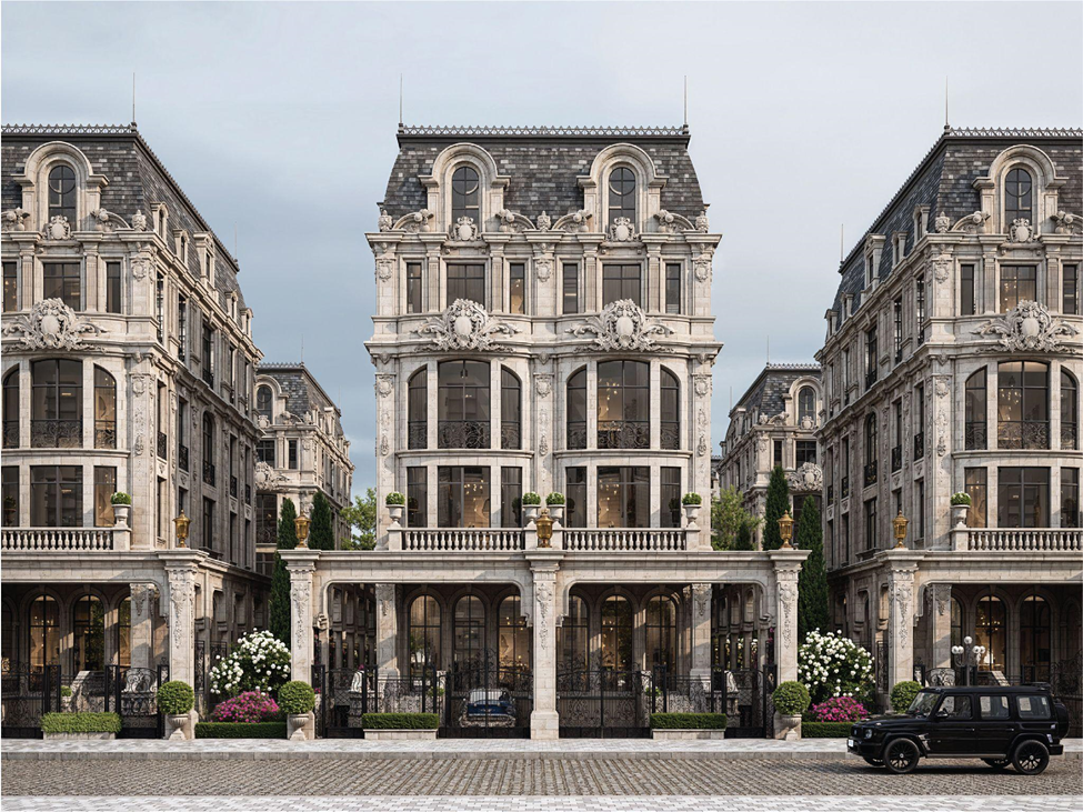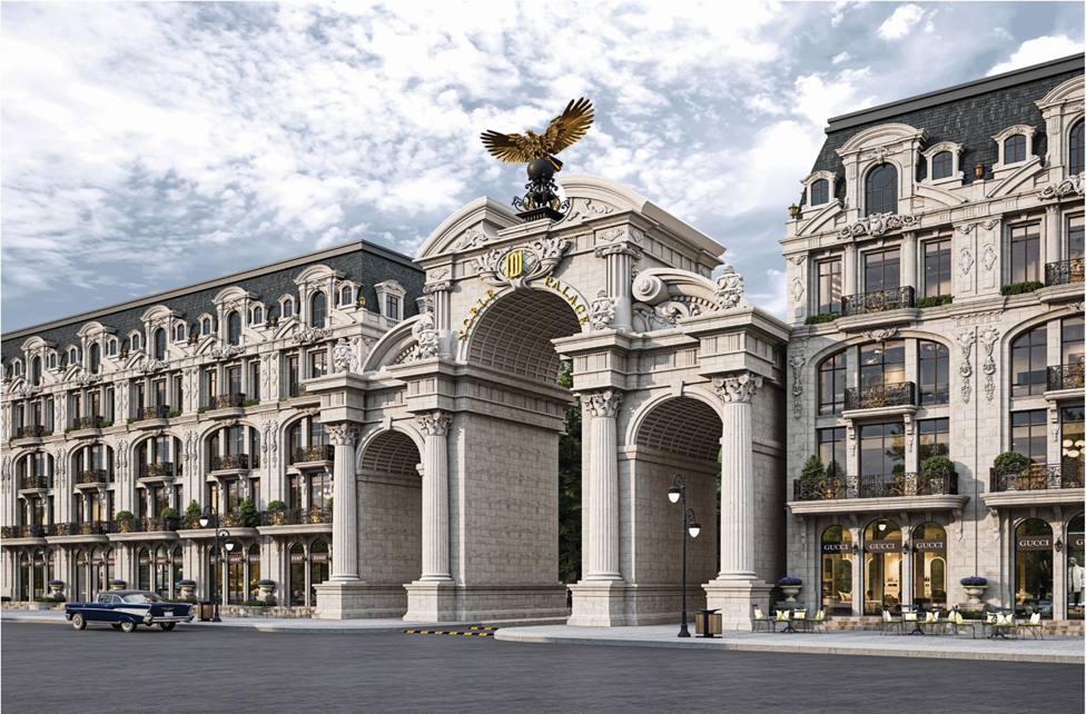 Được biết, đây là tổ hợp biệt thự thương mại và Shophouse liền kề lấy cảm hứng từ phong cách kiến trúc cổ điển xa hoa, thanh lịch của quý tộc châu Âu, bao gồm ba phân khu.