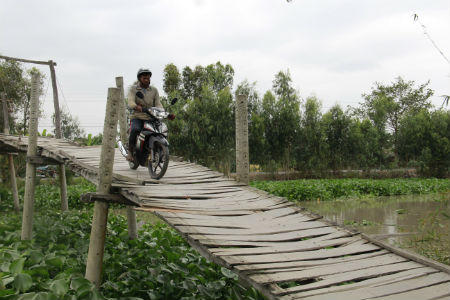 Ở những vùng quê nghèo, nơi bao quanh là sông nước mênh mông, khi người dân còn đang chật vật chạy ăn từng bữa thì làm sao nghĩ những chuyện lớn hơn. Không có cây cầu bắc qua sông, hàng ngày mọi người phải đi từ bờ bên này sang bờ bên kia bằng những cái bè đóng bằng gỗ, các em nhỏ đi học bằng cách ngồi trên bè rồi kéo theo một sợi dây để sang sông.