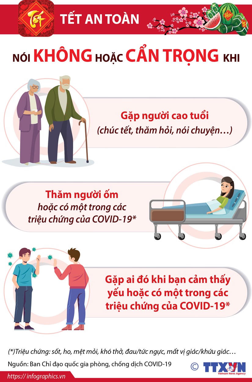 (PLVN) - Ban Chỉ đạo quốc gia phòng, chống dịch COVID-19 khuyến khích mọi người nói không hoặc cẩn trọng khi gặp người cao tuổi, thăm người ốm hoặc người có một trong những triệu chứng của COVID-19.