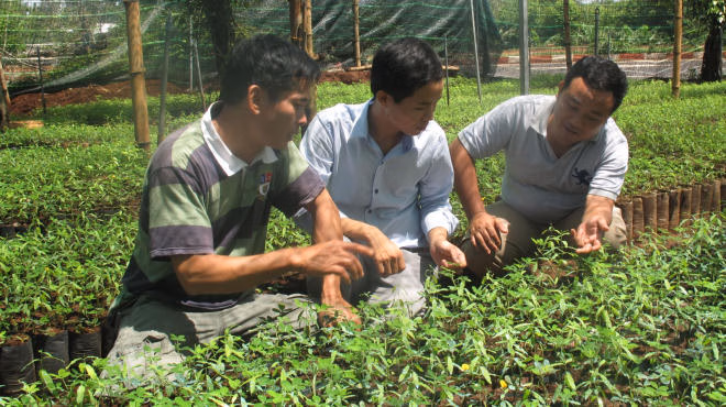 TS. Vũ Thoại (ngoài cùng bên phải) tại vườn ươm Đăk Lăk