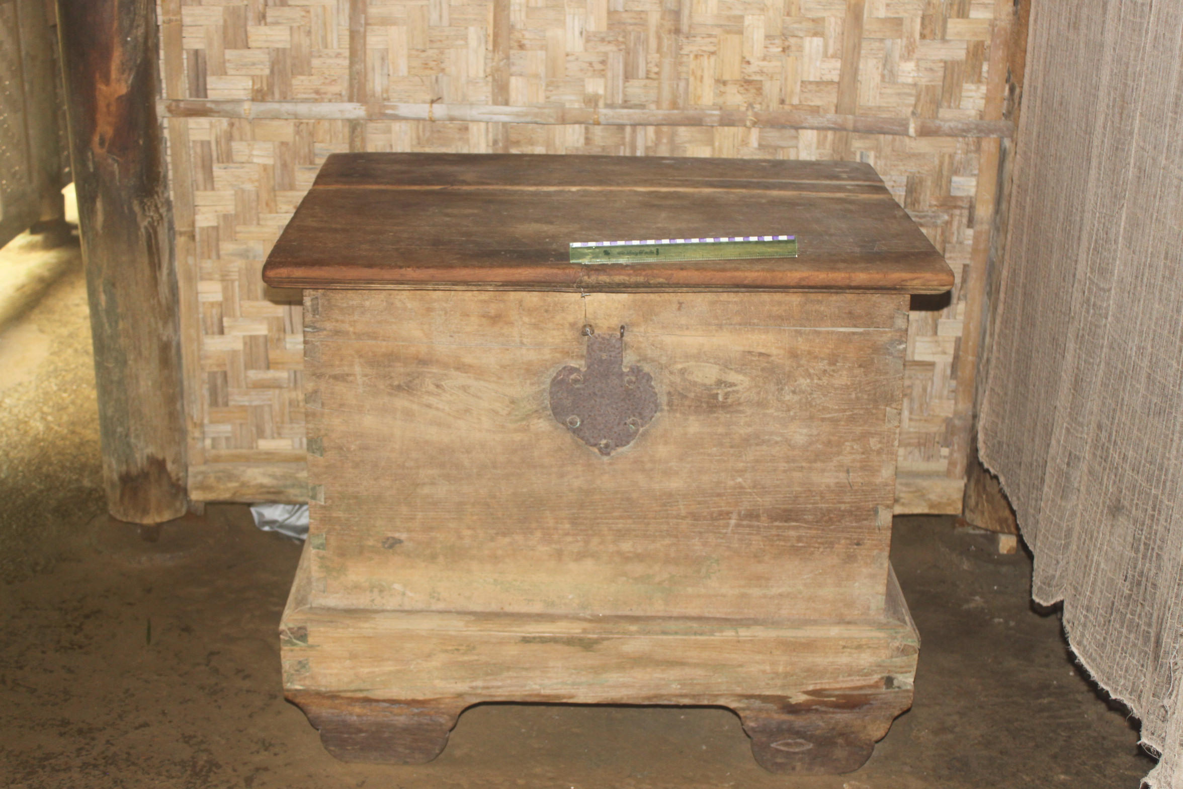 Một trong những hiện vật gốc quý giá là chiếc rương gỗ đang được trưng bày ở Khu di tích |