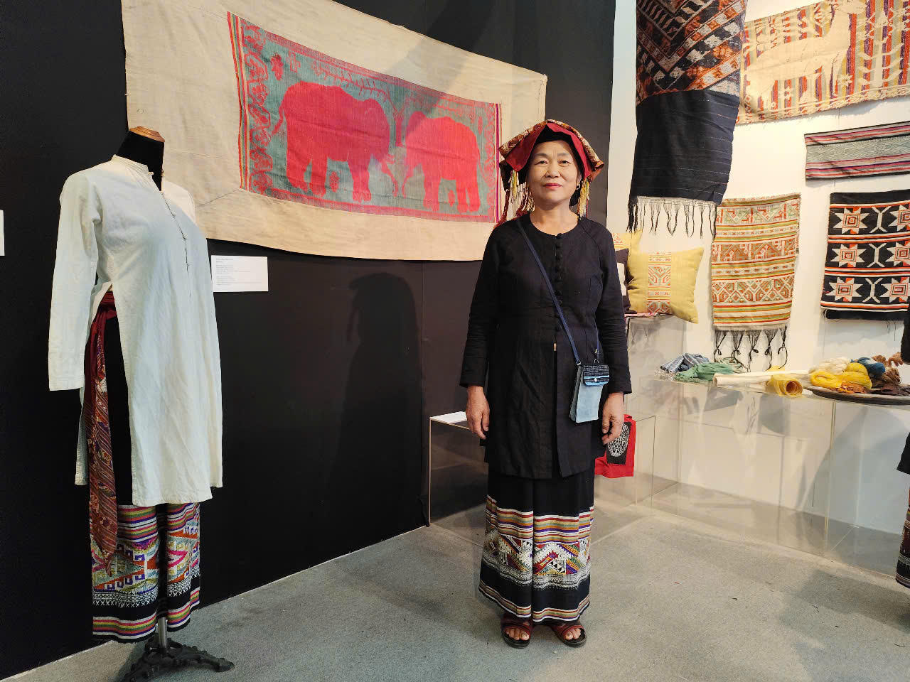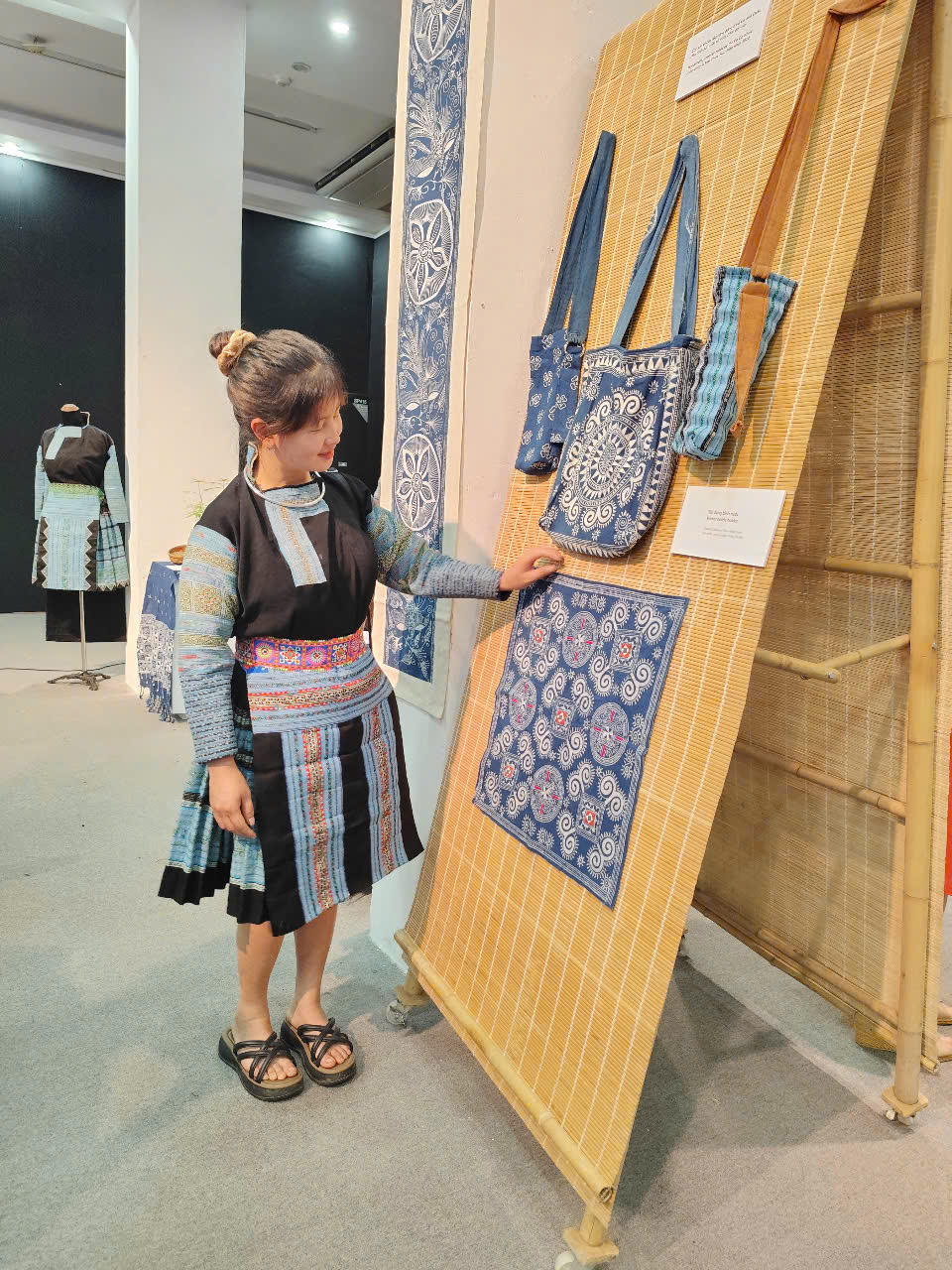 Tại sự kiện trưng bày, trao đổi với phóng viên chị Sồng Thị Mìa người Mông ở xã Pà Cò, Mai Châu, Hòa Bình cho biết: “Khi được tham gia Dự án “Nâng cao năng lực cho phụ nữ Mông ở xã Pà Cò, Mai Châu, Hòa Bình từ kỹ thuật thủ công truyền thống” thì cách làm vẫn theo phương pháp truyền thống nhưng sáng tạo hơn ở chỗ có thể làm được hoa văn các màu từ cây, củ, quả, thay vì một màu chàm như trước. Sản phẩm cũng phong phú hơn thay vì chỉ váy áo như trước đây, có thêm đồ thời trang, túi, chăn, vỏ gối…”. Theo chị Sồng Thị Mìa, được tham gia dự án phụ nữ Mông ở xã Pà Cò rất vui vì nhìn thấy hướng đi để cải thiện sinh kế.