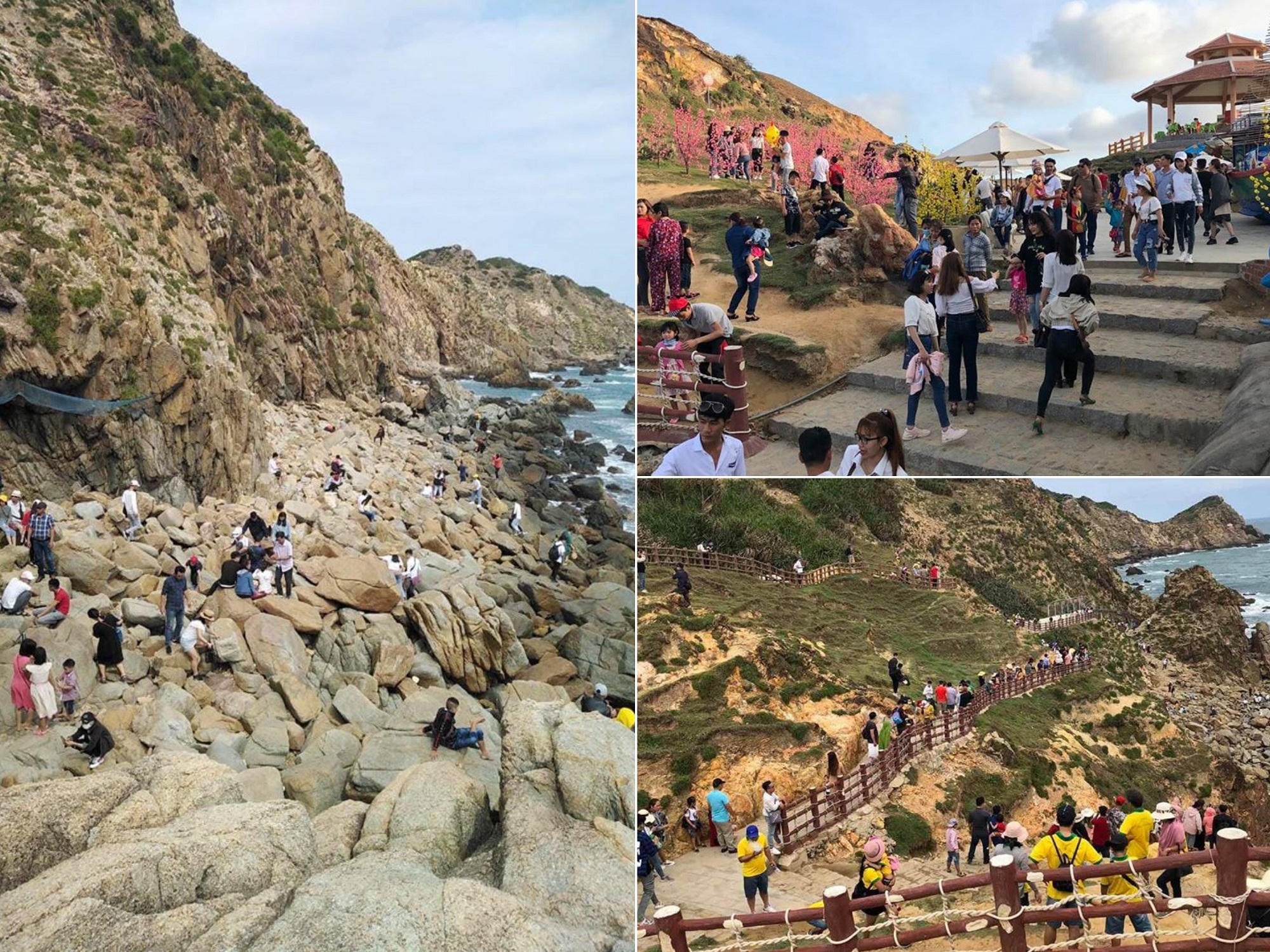 Khung cảnh tương tự cũng diễn ra tại Eo Gió - địa điểm được mệnh danh là “nơi ngắm bình minh đẹp nhất Việt Nam” - với hàng nghìn bậc thang xuống đến bãi đá, nơi du khách thỏa sức ghi lại những bức ảnh sống ảo để đời.