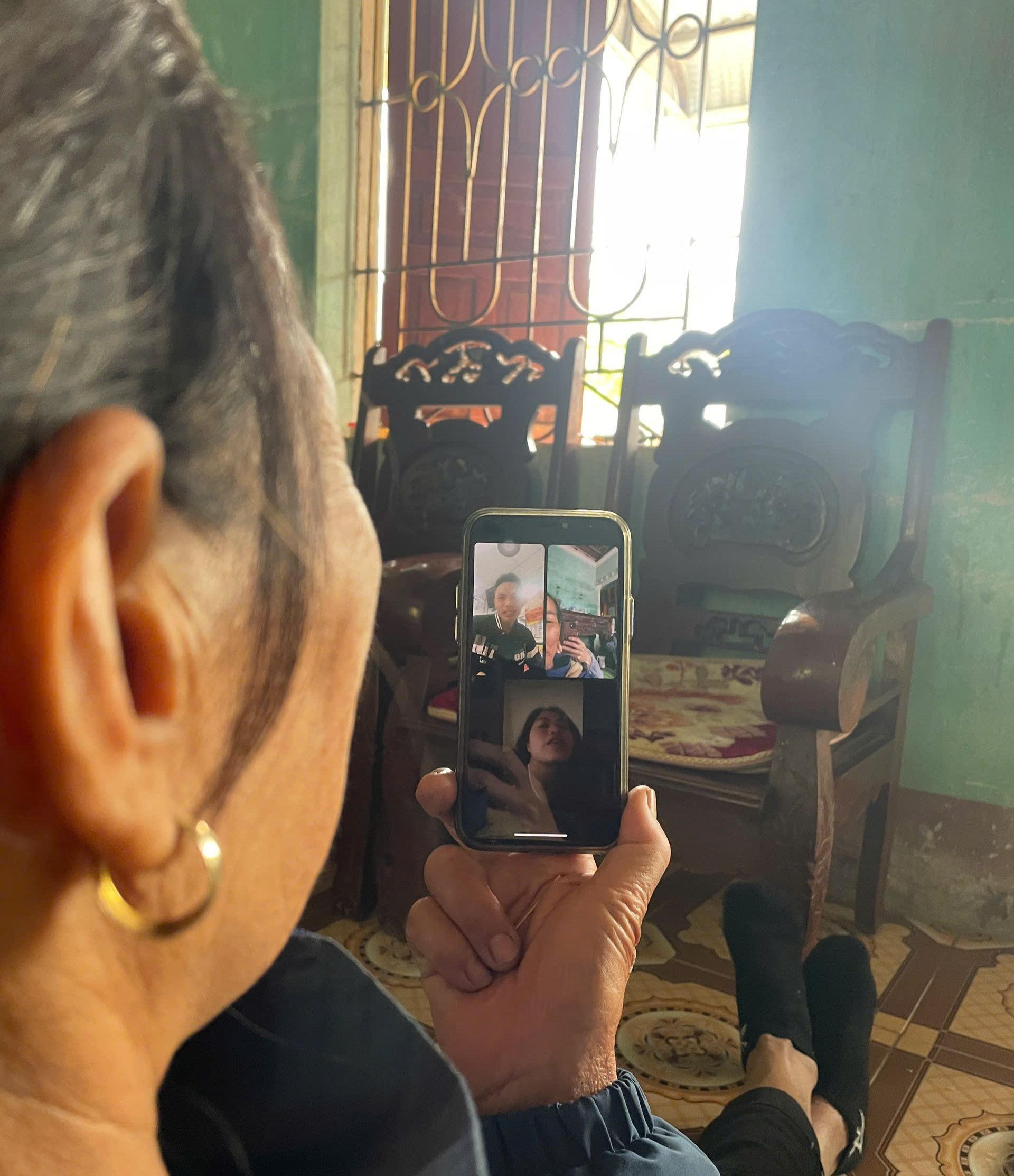 Những cuộc gọi video hay những lời chúc Tết qua điện thoại là cách duy nhất để vợ chồng ông Ba giải toả nỗi nhớ các con.