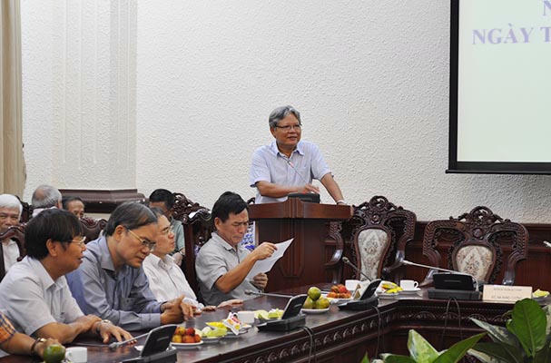 Thay mặt Ban liên lạc cán bộ hưu trí Bộ Tư pháp, nguyên Vụ trưởng Vụ Phổ biến, giáo dục pháp luật Nguyễn Duy Lãm xúc động trước truyền thống gặp mặt tốt đẹp của Bộ Tư pháp nhân Ngày truyền thống.
