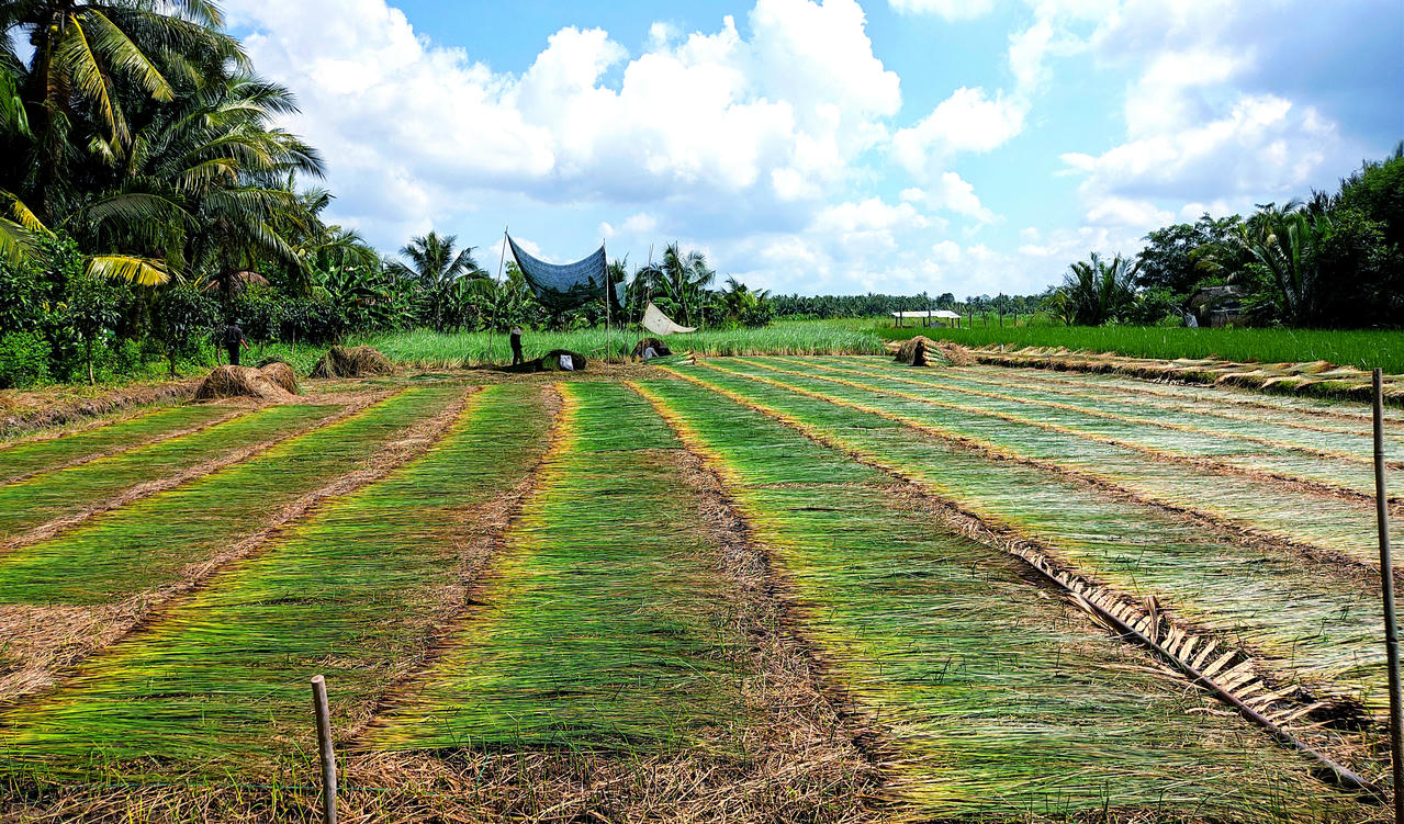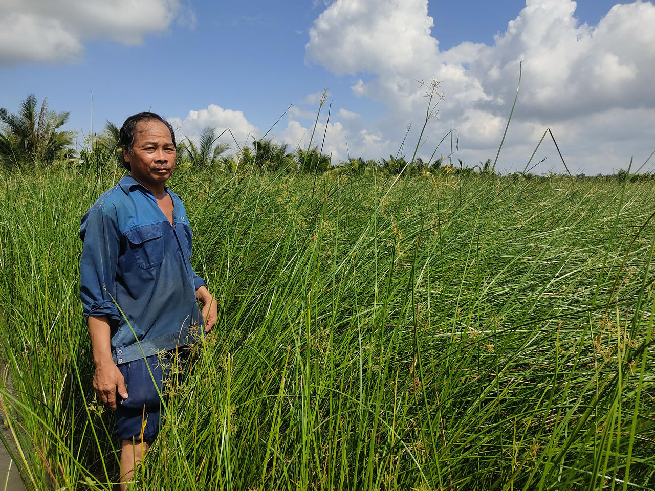 Hộ của ông Lập là một trong những hộ gắn bó với cây lác lâu đời nhất nơi đây. Với diện tích 5.000m2 ban đầu, sau hơn 30 năm, gia đình ông đã mở rộng ra gần 17.000m2. Phần lớn chi phí mở rộng diện tích đất canh tác, đến xây lại căn nhà mới và lo cho các con ăn học, là nhờ vào cây lác.