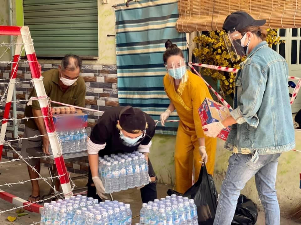 Theo đó, phần hỗ trợ lương thực của giọng ca Lâu đài cát bao gồm thùng mì gói, nước suối, trứng gà. Có một chiếc bàn để ngoài hẻm và lần lượt từng hộ dân đại diện 1 người ra bê phần quà vào. "Bà mẹ 1 con" không quên cảm ơn Titi (HKT), người thân và trợ lý đã cùng nhau vác hàng hóa đến tận nơi trao quà cho bà con.