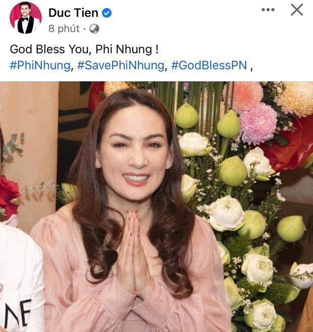 Trên mạng xã hội, từ qua đến nay, các sao Việt đồng loạt đăng status cầu nguyện và mong Phi Nhung tai qua nạn khỏi. Là người em thân thiết với Phi Nhung, Nhật Kim Anh nghẹn ngào thốt lên: "Đêm qua tôi bỗng mơ thấy chị. Chị ơi cố lên nhé, ngày nào em cũng hồi hướng cho chị".