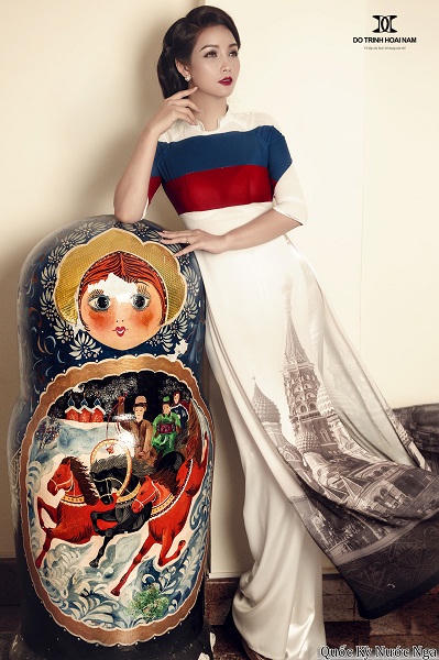 Và nếu như cả thế giới đều đang ăn, ngủ và thở cùng World Cup thì Việt Nam cũng không đứng ngoài vòng xoáy này. Hòa cùng không khí sôi động của ngày hội thể thao lớn nhất thế giới, NTK Đỗ Trịnh Hoài Nam đã tung ra bộ ảnh BST Áo dài “Thế giới như tôi thấy” in hình quốc kỳ 32 nước tham dự World Cup 2018.