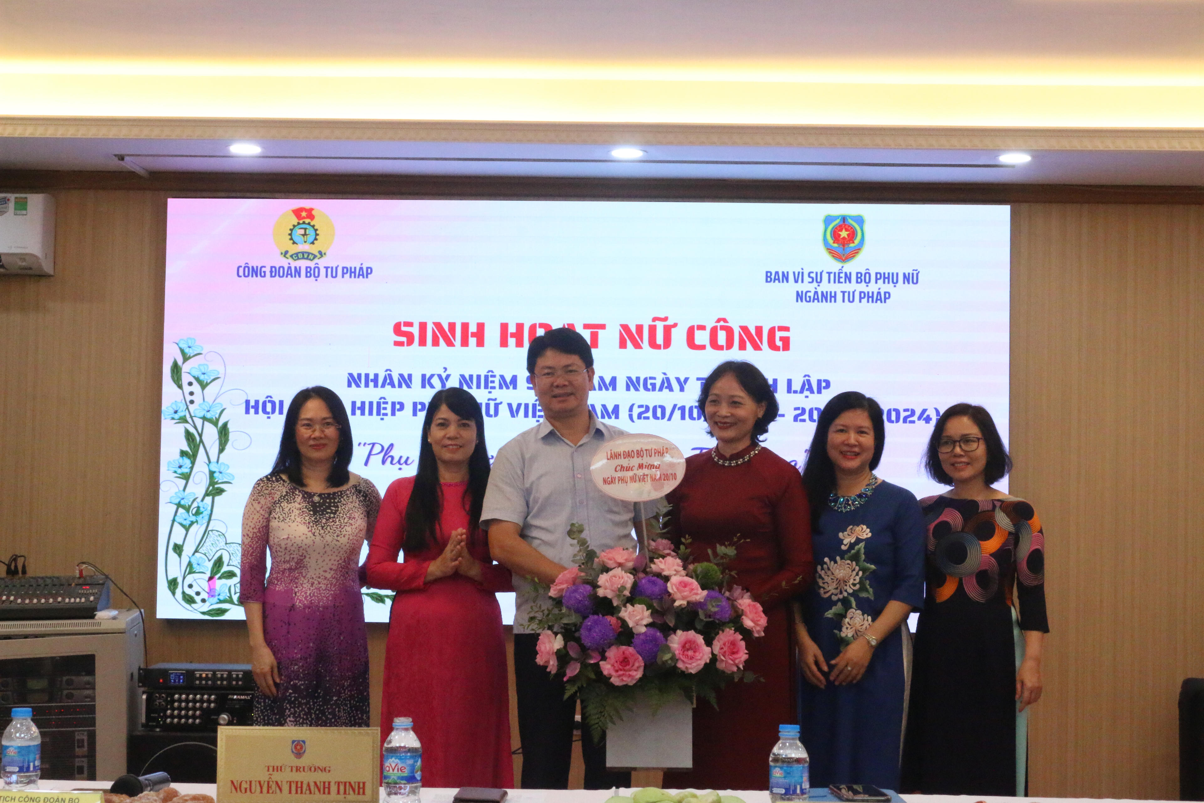 Trong khuôn khổ buổi sinh hoạt, Thứ trưởng Nguyễn Thanh Tịnh đã tặng hoa chúc mừng Kỷ niệm 94 năm ngày thành lập Hội Liên hiệp Phụ nữ Việt Nam (20/10/1930 – 20/10/2024).