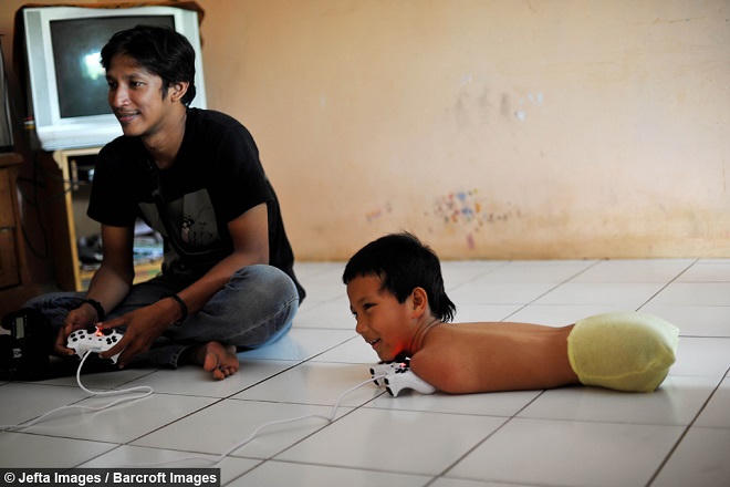 “Mỗi ngày chúng tôi phải chăm sóc cho Tiyo nên không thể đi đâu. Nếu chúng tôi đi làm việc thì Tiyo sẽ không có ai chăm cả và chúng tôi không muốn điều đó xảy ra. Chúng tôi muốn làm tất cả những gì tốt nhất cho thằng bé”, Wawan Satrio - cha của cậu bé chia sẻ.