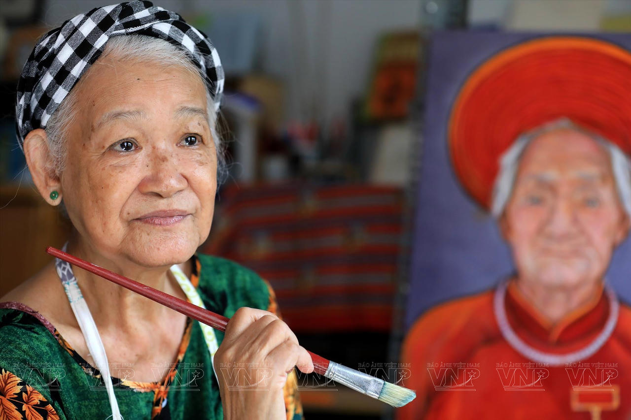 Nữ họa sĩ Đặng Ái Việt - người đã thực hiện hơn 3.000 bức ký họa chân dung Mẹ Việt Nam anh hùng còn sống trên khắp cả nước. Ảnh BTPN |