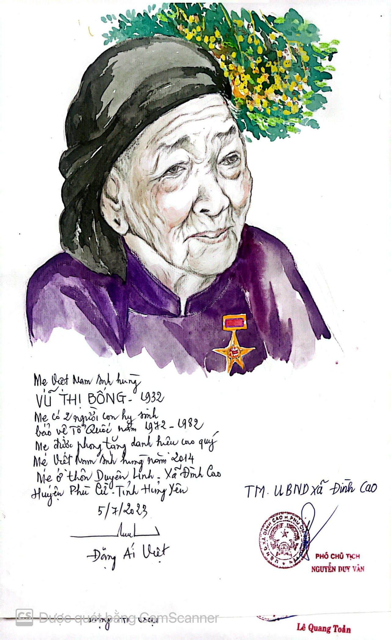 Mẹ VNAH Vũ Thị Bông ở tỉnh Hưng Yên qua nét vẽ của nữ họa sĩ Đặng Ái Việt |