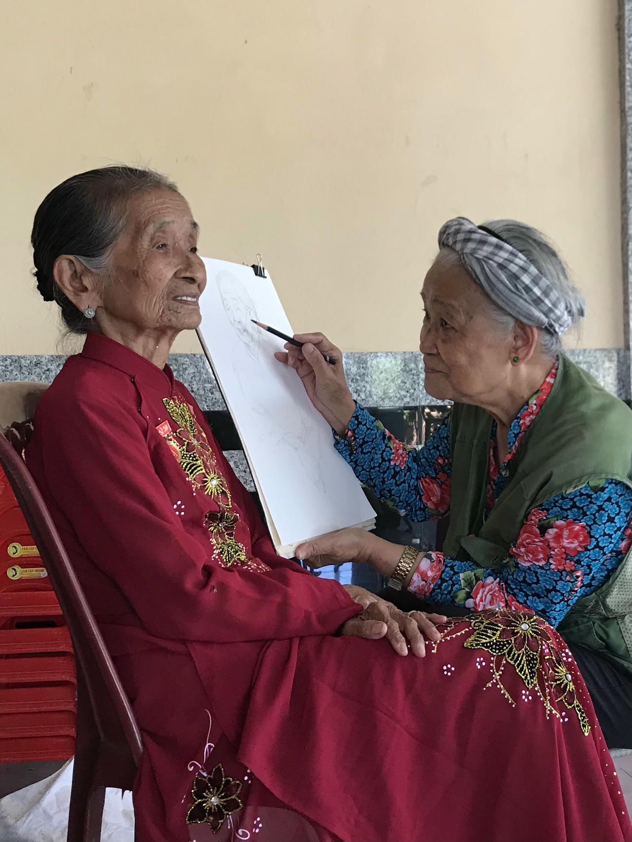 Được biết, Mẹ VNAH Trần Thị Tỏ có hai người con là liệt sĩ, một người hy sinh ở Tây Ninh trong chiến tranh và một người là công an, hy sinh trong công tác khi thời bình. Mẹ tâm sự với nữ họa sĩ là chỉ mong đưa được người con là liệt sĩ hy sinh ở Tây Ninh về quê nhà. Sau tâm sự đó, mẹ Tỏ và nữ họa sĩ cùng khóc. Còn với riêng nữ họa sĩ, ở Hà Tĩnh bà cũng có kỷ niệm khó quên. “Khi có kế hoạch vẽ ở Hà Tĩnh, tôi đã liên hệ với ngành LĐ-TB&XH địa phương và được báo con số là toàn tỉnh có 21 Mẹ VNAH. Nhưng khi tôi đến nơi, con số đã tụt xuống còn 20. Một mẹ đã ra đi mãi mãi cùng thời gian. Tôi như chết lặng, chỉ ước ao sao mình có thể chạy đua thắng được thời gian”, bà nhớ lại.