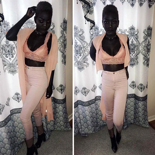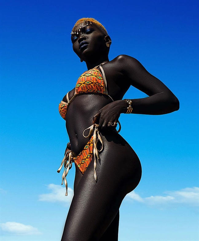 Nyakim Gatwech, 24 tuổi là một người mẫu gốc Nam Sudan với vẻ ngoài hết sức ấn tượng nhờ làn da tối màu tuyệt đẹp.