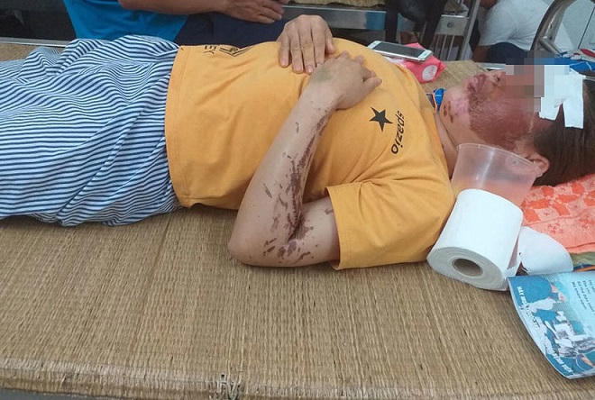 Bất ngờ, chị Nh không phản ứng kịp, không kịp la hét. Mặt và mắt bị bỏng rát chị Nh chạy về phía chậu nước để rửa tránh bị bỏng.