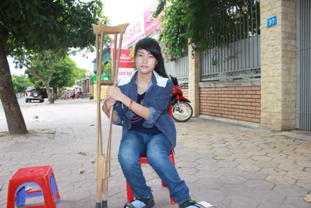 Sáng 10/7, cô nữ sinh Nguyễn Thị Phúc – Trường THPT Lê Lợi, huyện Tân Kỳ, Nghệ An (trú tại xã Tân Hợp, huyện Tân Kỳ), cùng đôi nạng gỗ và mẹ mình vượt hơn 100km để thực hiện ước mơ làm dược sỹ của mình tại điểm thi Trường THCS Đặng Thai Mai (TP.Vinh, Nghệ An).
