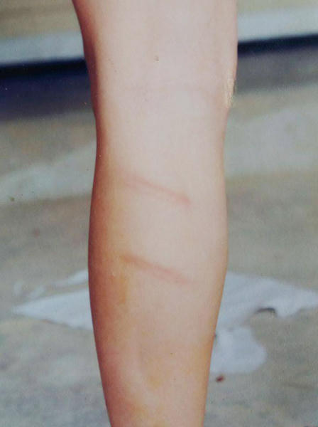 Bức xúc vì cô giáo không chỉ đánh 1 lần "nhắc nhở" mà đánh nhiều lần vào người T., chị Duyên báo cáo nhà trường vụ việc trên. “Bằng mắt thường có thể nhìn thấy 4-5 vết hằn do thước đánh để lại trên lưng và chân. Mấy ngày sau cháu kêu đau không đi học được, kèm với triệu chứng sốt, không chịu ăn uống…”, chị Duyên cho biết thêm.