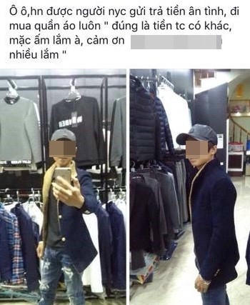Sau khi chia tay, chàng trai nhắn tin đòi người yêu cũ tiền "bù đắp tình cảm" rồi đi mua áo mới. Người này chụp ảnh mình mặc áo mới đăng lên Facebook để cảm ơn cô gái.