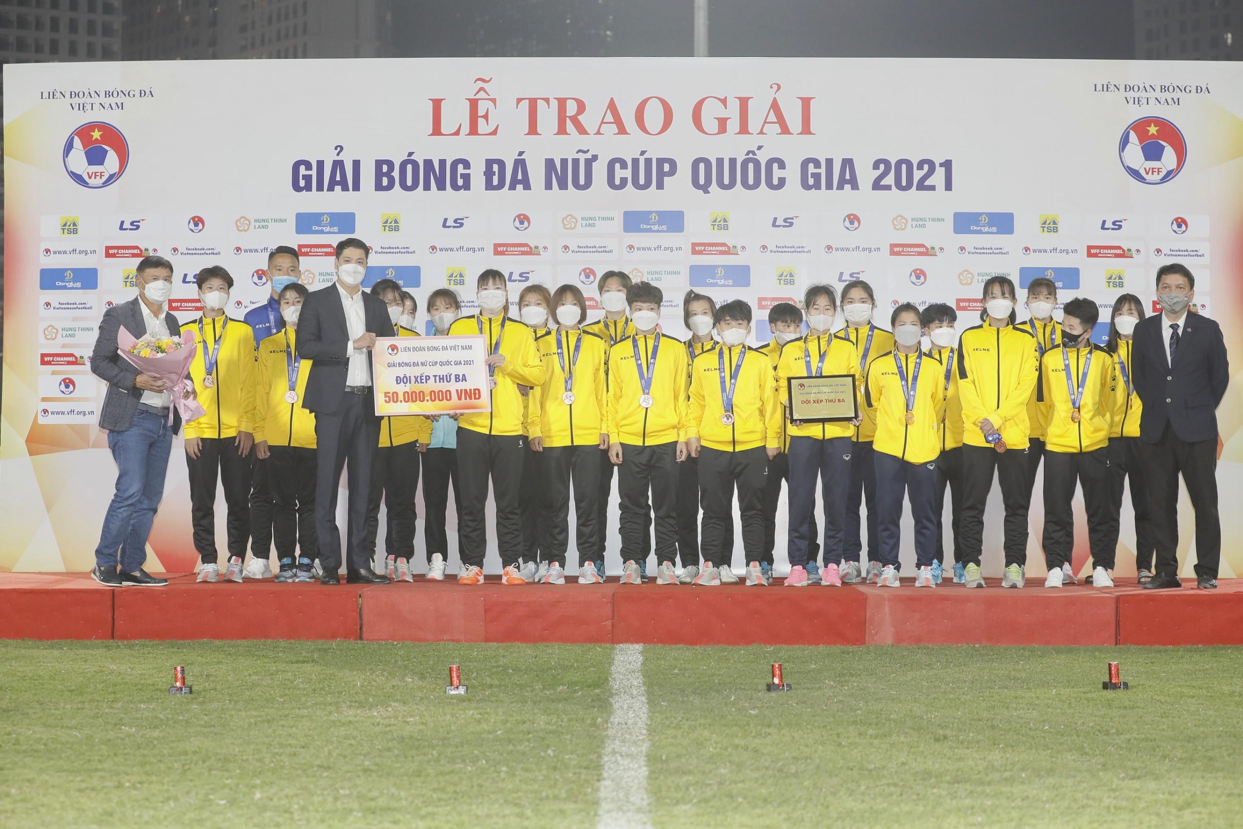 Cũng trong chiều 10/11, trên sân Trung tâm đào tạo bóng đá trẻ Việt Nam đã diễn ra trận tranh hạng Ba Giải bóng đá nữ Cúp Quốc gia 2021 giữa Than KSVN và Phong Phú Hà Nam.