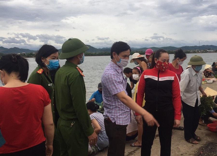 Trung tá Trần Thị Thu Thủy cùng Ban chỉ đạo phòng, chống Covid-19 của xã đi tuyên truyền vận động các hộ kinh doanh tại chợ Quảng Hải chấp hành các quy định về phòng, chống dịch |