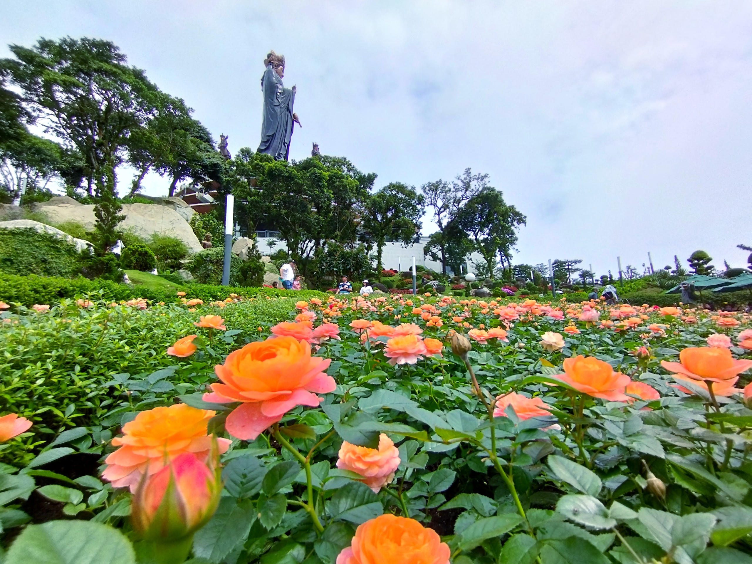 Trên đỉnh núi, một miền tiên cảnh được tạo ra bởi hơn 50.000 gốc hoa bung nở rực rỡ sắc màu trong mây trời trong vắt cùng rất nhiều tiểu cảnh độc đáo. Khu vườn Vô Ngã với những lối đi rải sỏi và các tiểu tượng ngộ nghĩnh tạo nên không gian thiền định an yên cho du khách. (Ảnh: Sun World Ba Den Mountain)