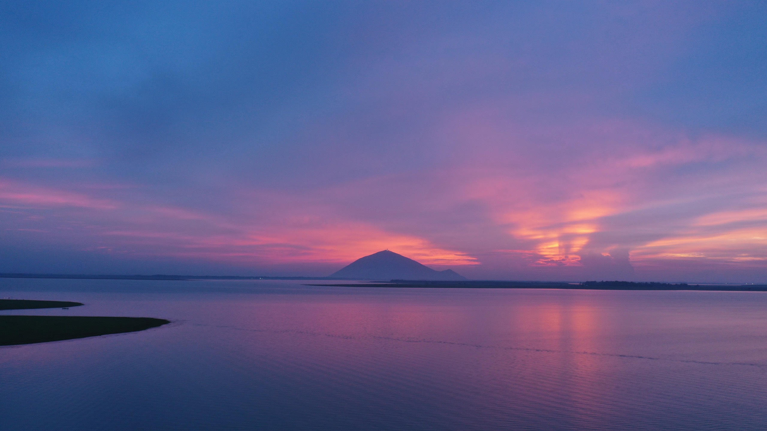 Trong ráng chiều nhuộm sắc tím, từ hồ Dầu Tiếng sẽ thấy núi Bà Đen soi bóng nước đẹp huyền hoặc. Mây trùm đỉnh núi là đặc sản của núi Bà Đen, với những đám mây khi tạo hình chiếc đĩa bay khổng lồ, lúc tựa cầu vồng lửa đỏ rực kỳ thú. Rất nhiều người chọn núi Bà Đen là điểm đến săn mây không thể bỏ qua tại Nam bộ.