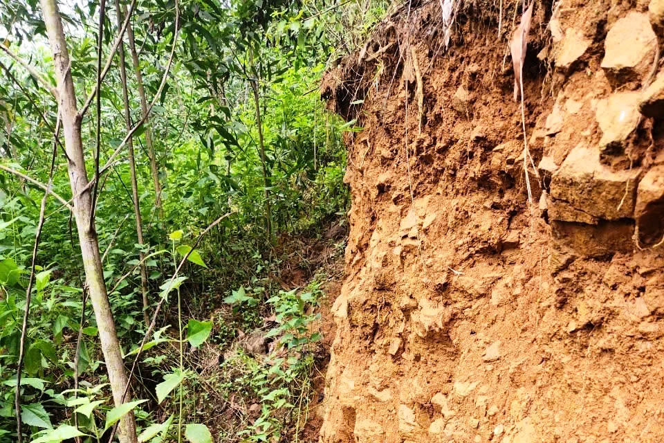 Vết nứt kéo dài 60m, nhiều chỗ sâu hơn 2m có nguy cơ gây sạt lở núi Mang Kà Muồng |