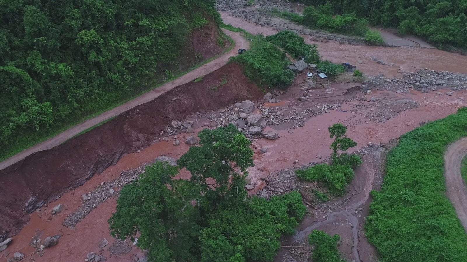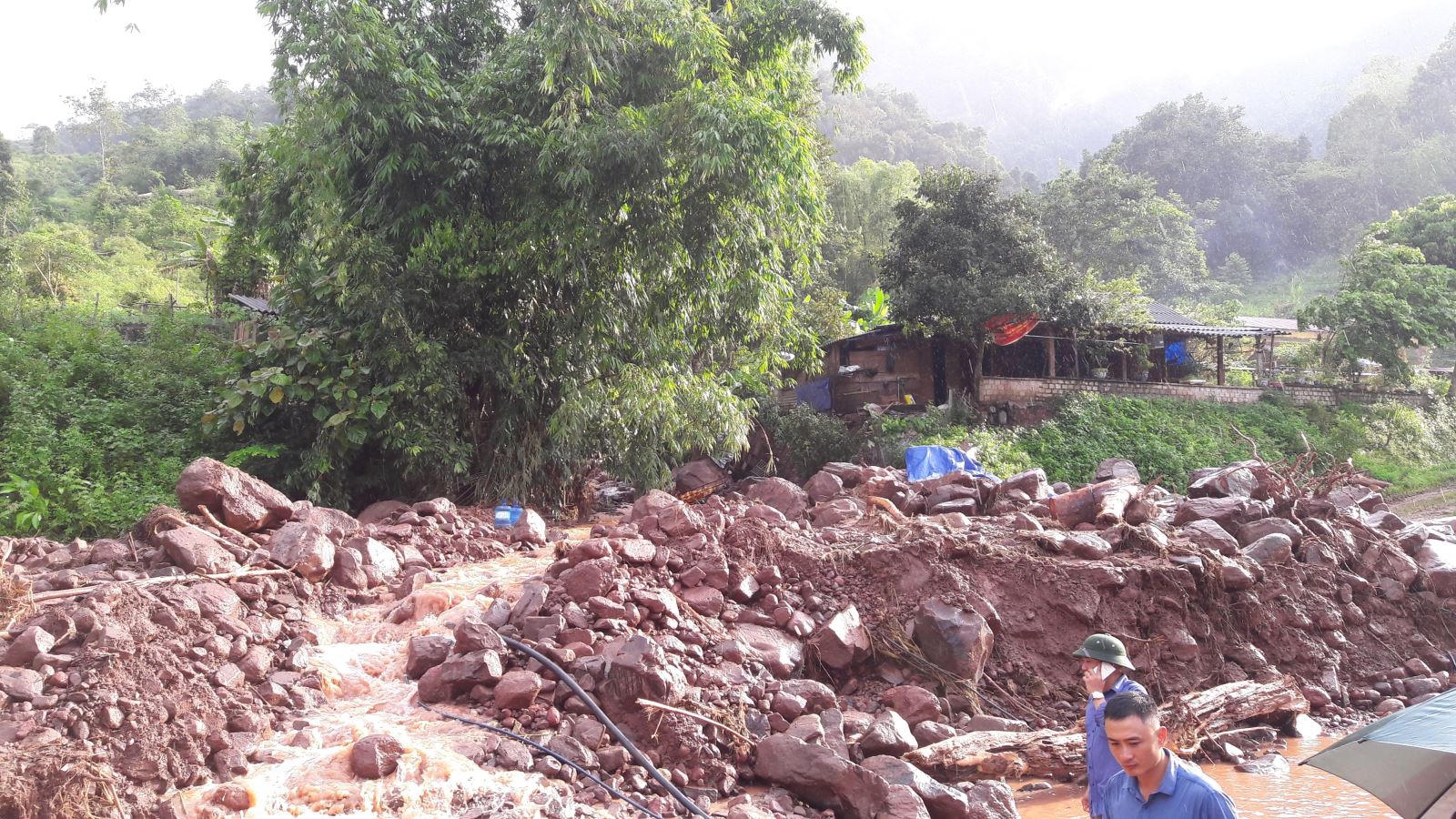 Lũ cuốn trôi cầu Nậm Đích, xã Chà Cang và gây sạt lở tuyến đường liên các xã của huyện Nậm Nhùn