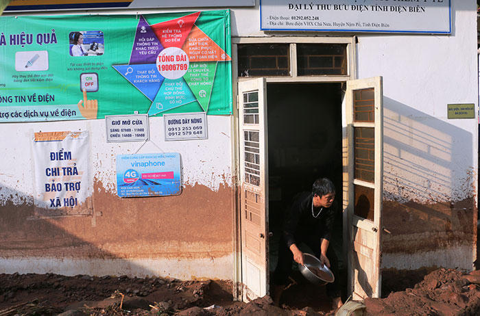 Nước bẩn nhấn chìm đường, bùn lầy 'lấp' sân trường Nậm Pồ sau lũ dữ