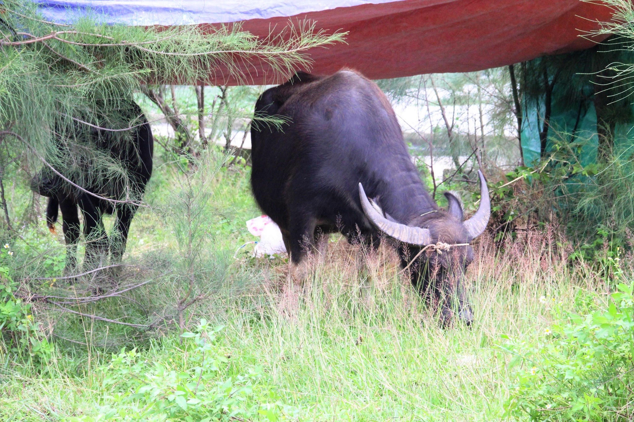 Bò được cột tại một đồi cao. |